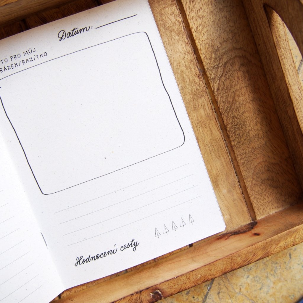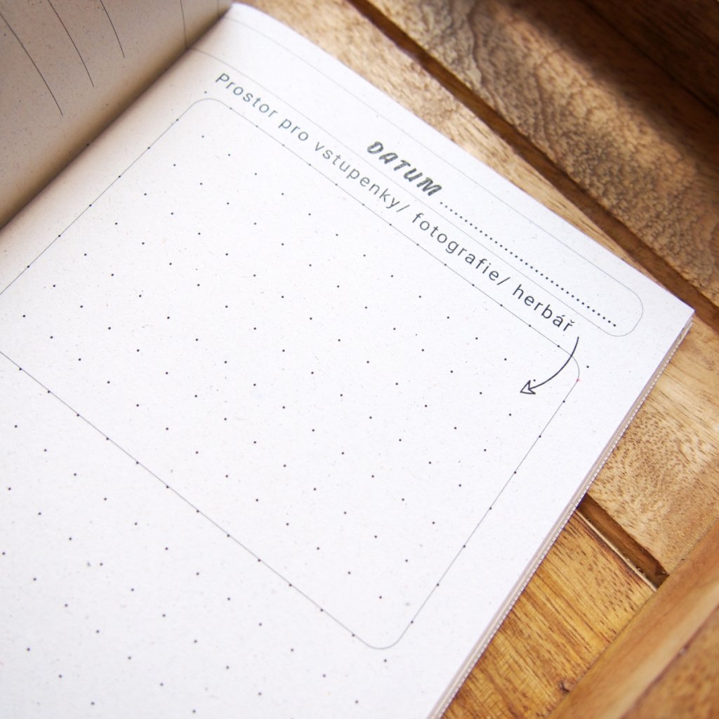 - Prostor pro zápisky z výletů: datum, místo, s kým jste byli, zážitky, dojmy