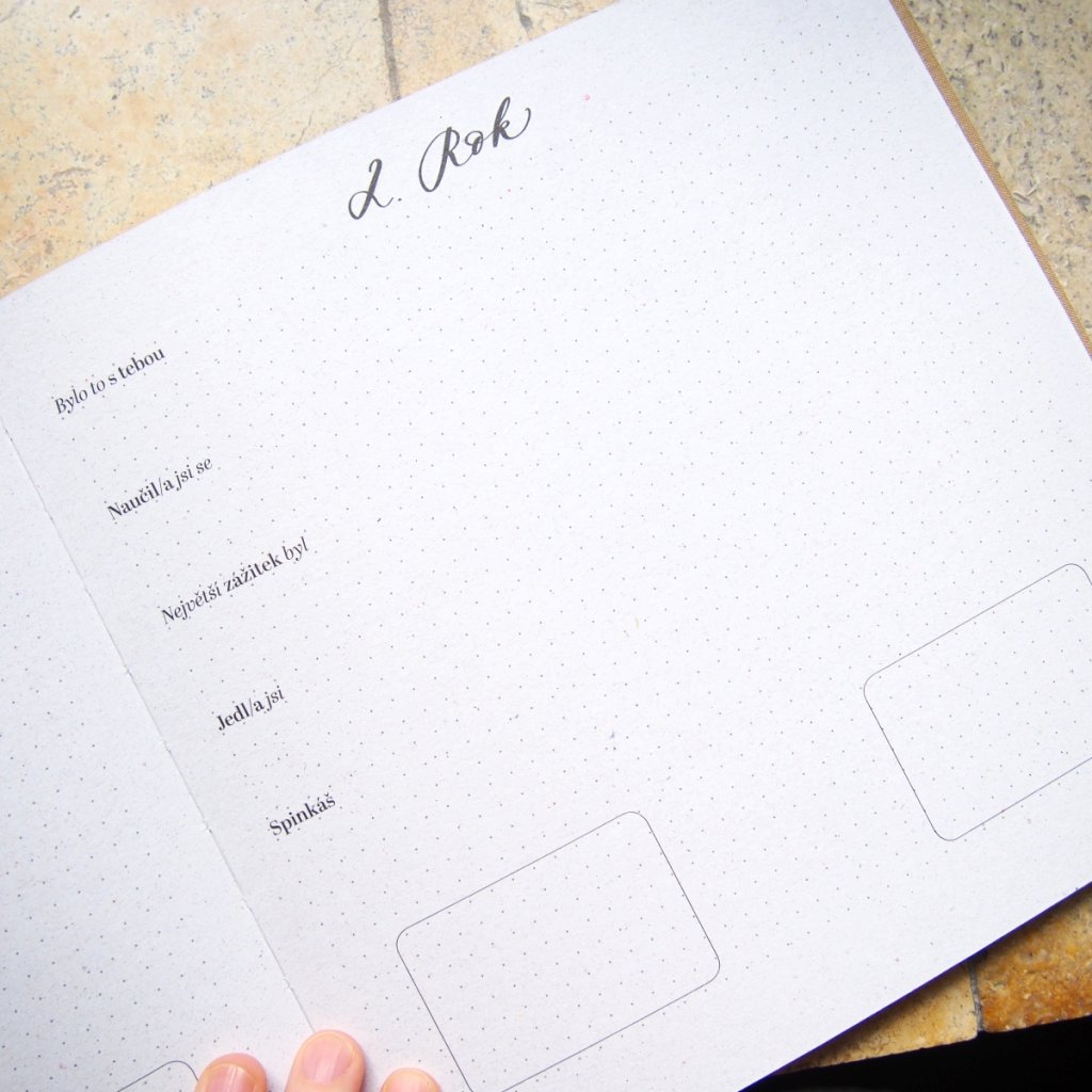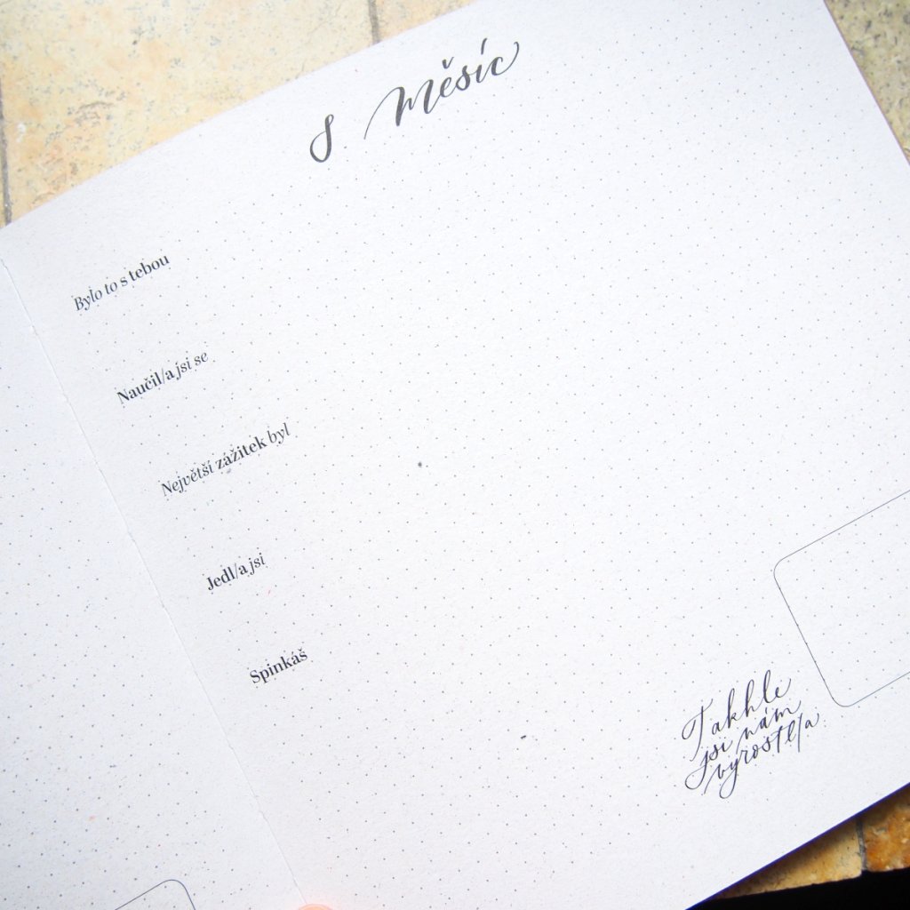 TIP: Do deníku můžete nalepit fotky nebo naše milníkové kartičky – ideálně s washi páskou.