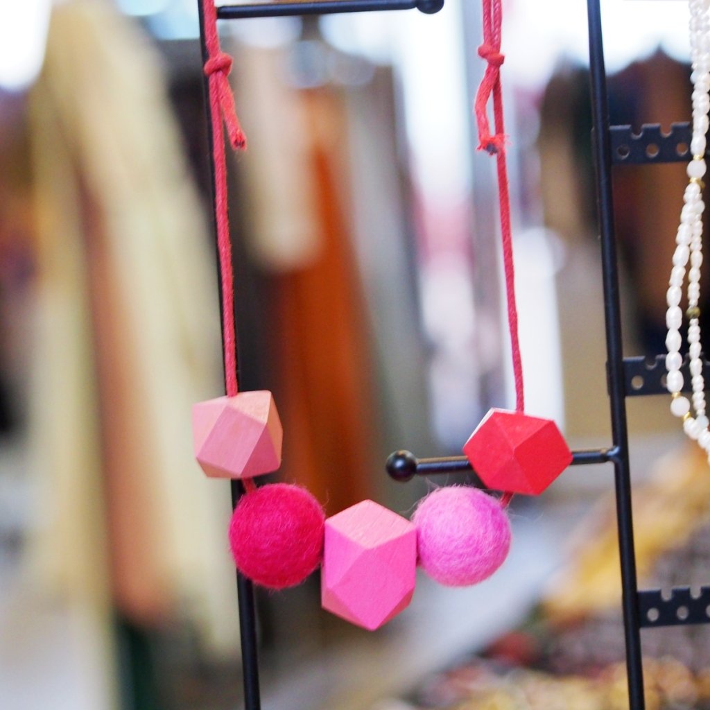 Dřevěné a plstěné korále: červeno-růžové