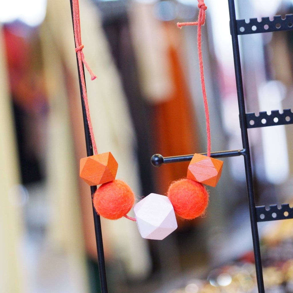 Dřevěné a plstěné korále: oranžové