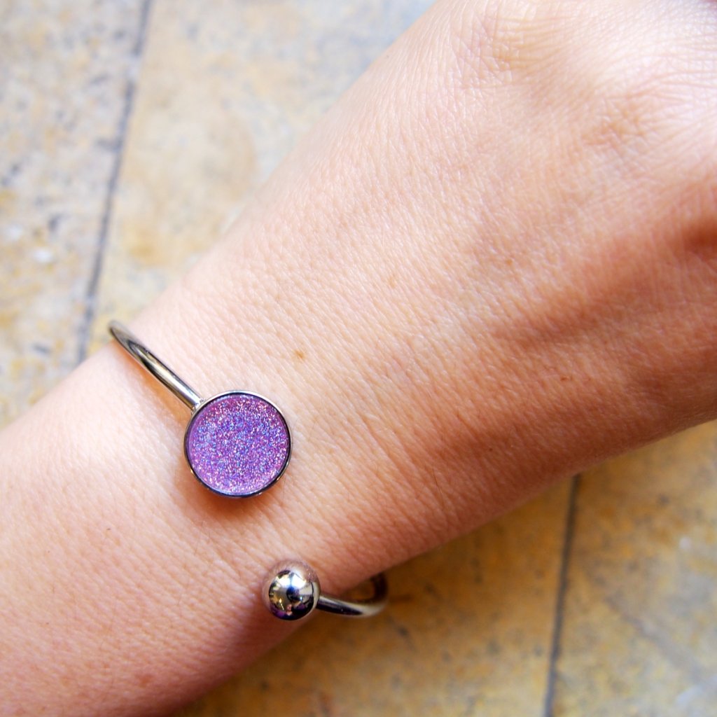 Kovový náramek: s růžovými třpytkami