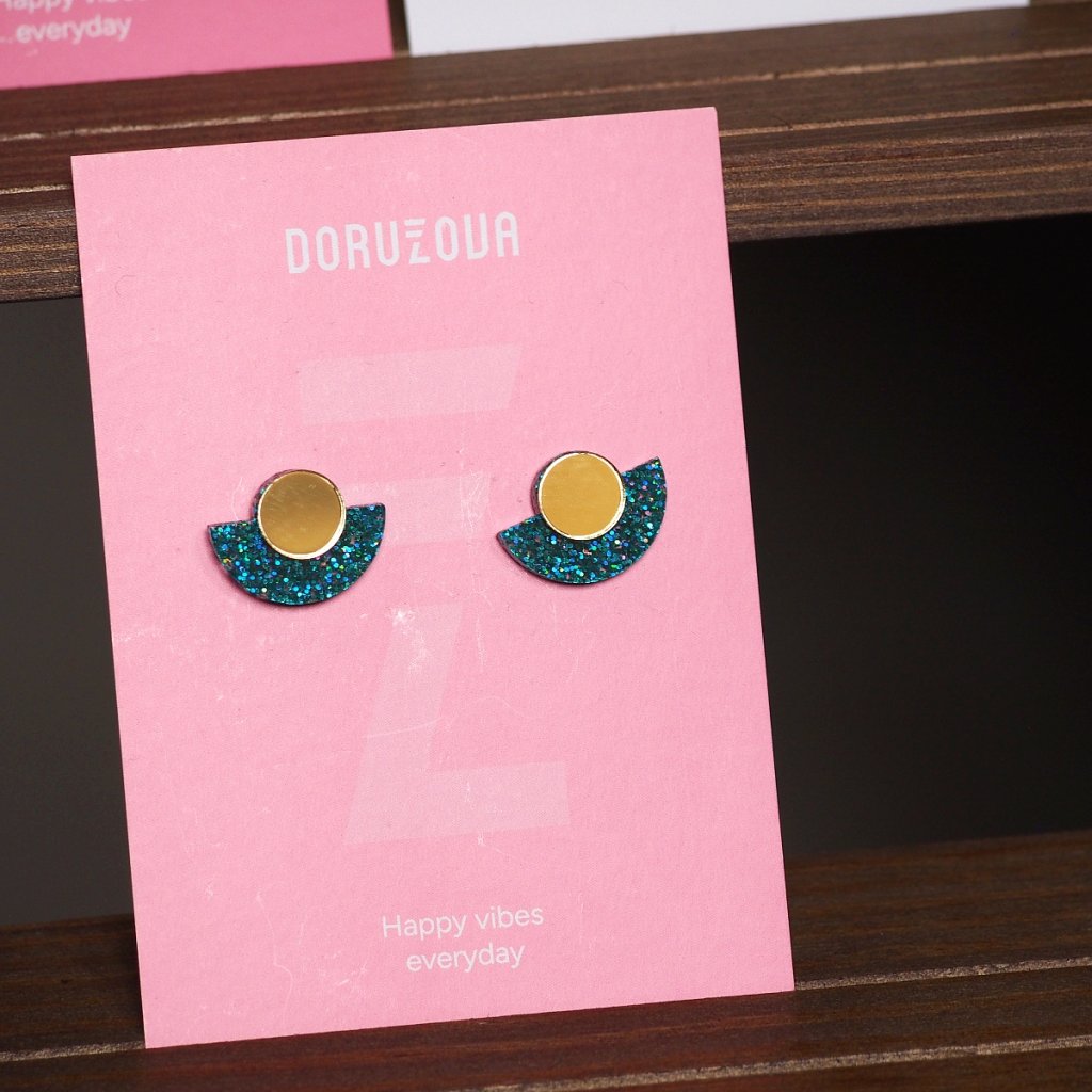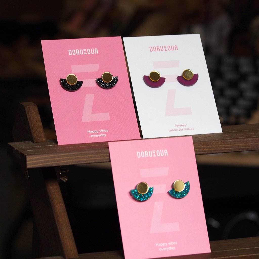 Minimalistické, ale ne nudné. Náušnice Doružova – Bauhaus Mini si berou inspiraci z legendární německé školy Bauhaus, kde se tvar potkával s funkcí a barva s odvahou. Kulatý zlatý střed je jak malý sluneční bod. Kolem něj půlkruh – strakatý, zelený, žíhaný, vždy jiný. Velikost 2 × 1,5 cm znamená, že jsou drobné, ale každým coulem výmluvné. Vyrobeno na Slovensku z akrylového skla a chirurgické oceli – autorský design pro milovnice chytré estetiky.