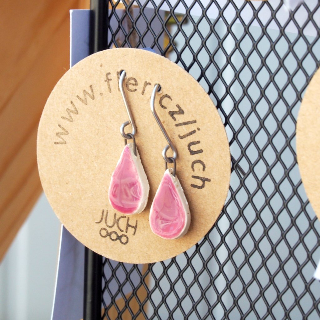 Náušnice Juch jsou jako malá keramická radost, co se ti zachytí za ucho a už se tě nepustí. Jsou to šperky, které nepotřebují křičet. Stačí jim být. A možná – ti vykouzlí tiché, upřímné juch.