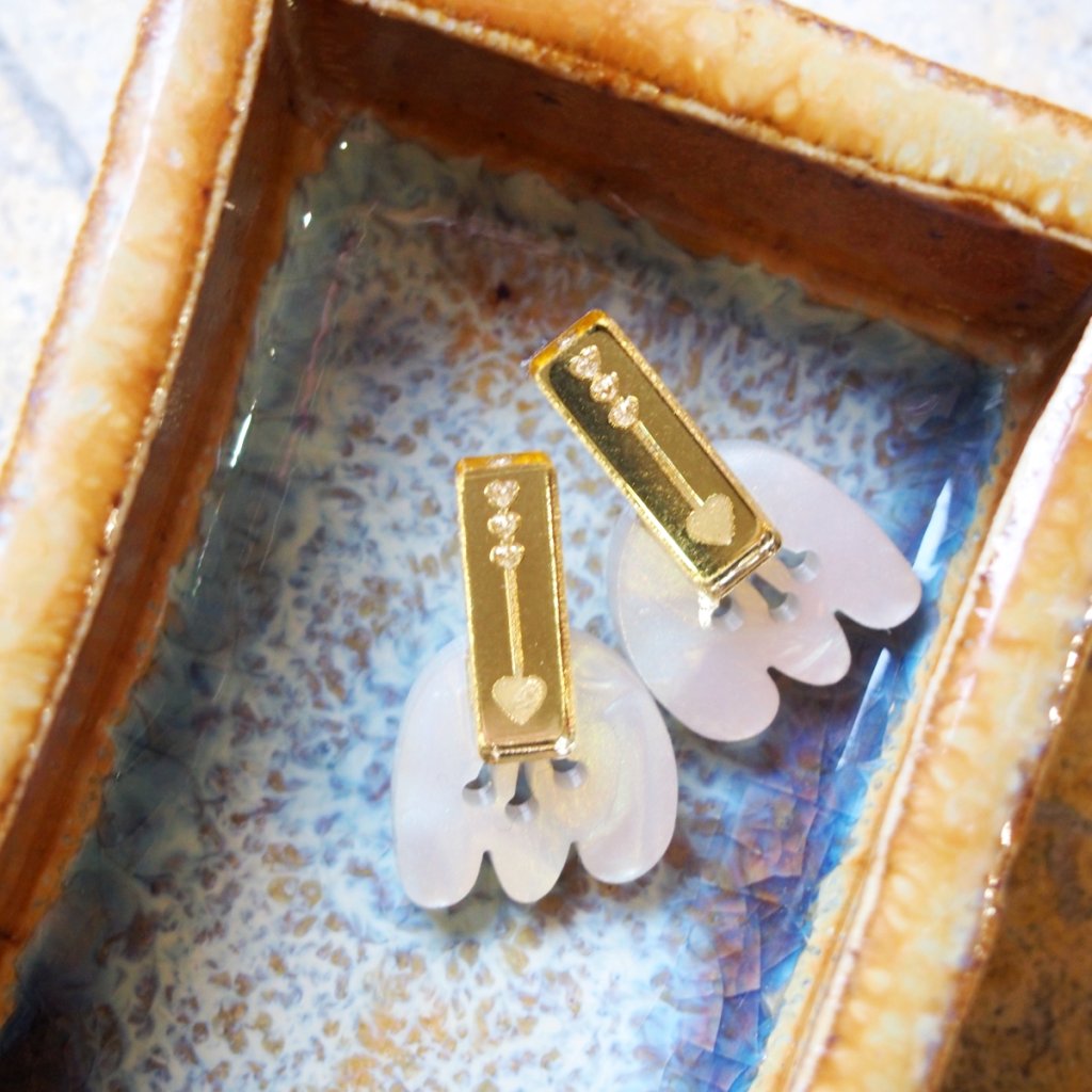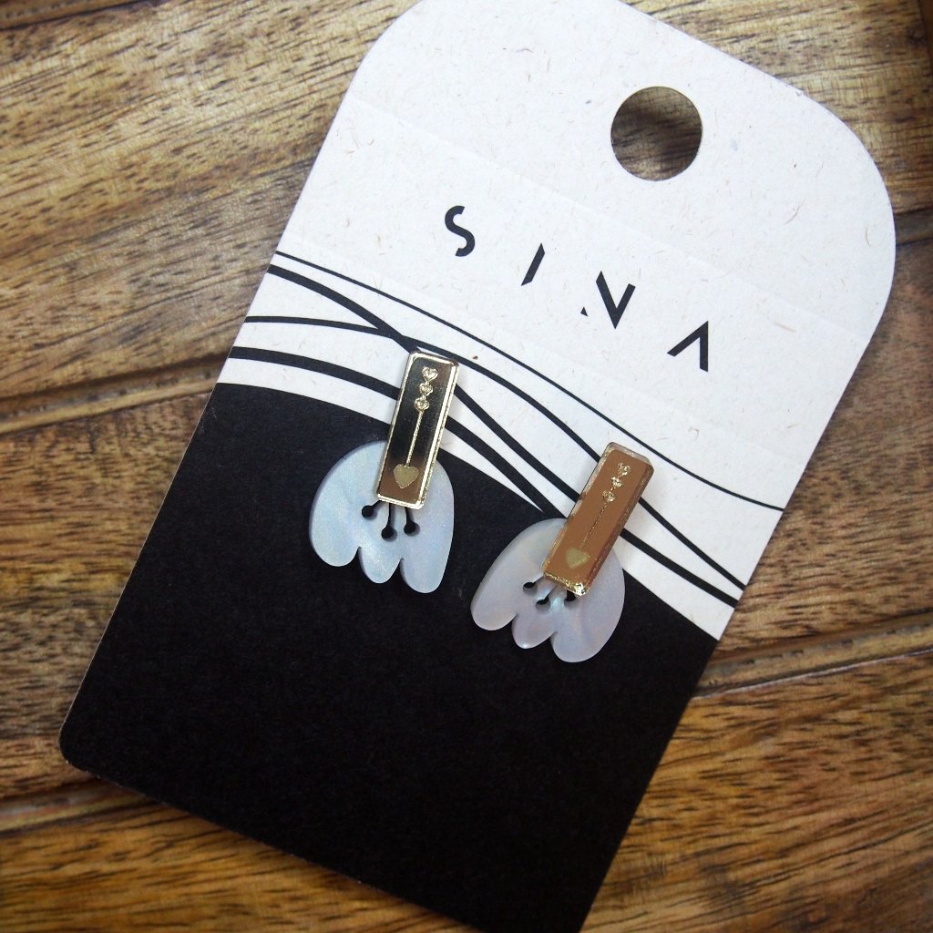 Bílá barva má zvláštní schopnost: neodvádí pozornost, ale přitahuje ji jiným způsobem. Tahle dvojice pracuje se světlem stejně jako s tvým stylem. Akrylátové sklo dodává čistotu, dřevěná dýha přidává strukturu a chirurgická ocel zajišťuje, že náušnice můžeš nosit celý den.