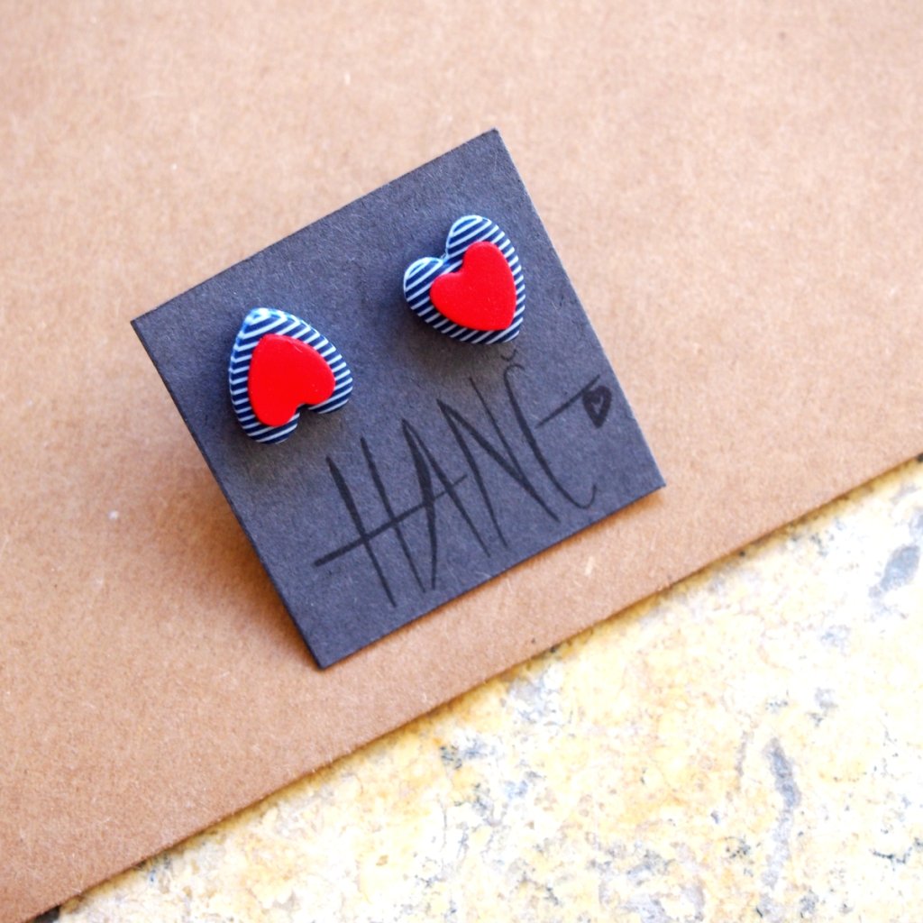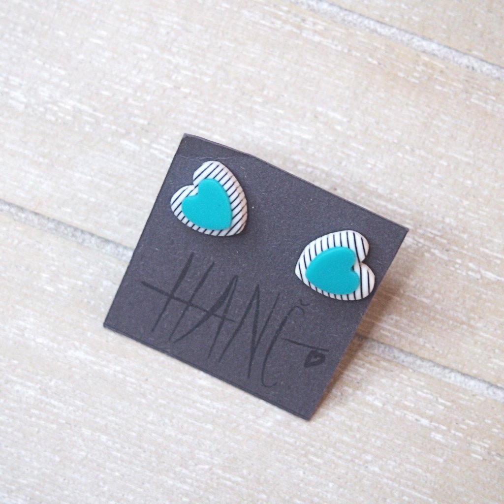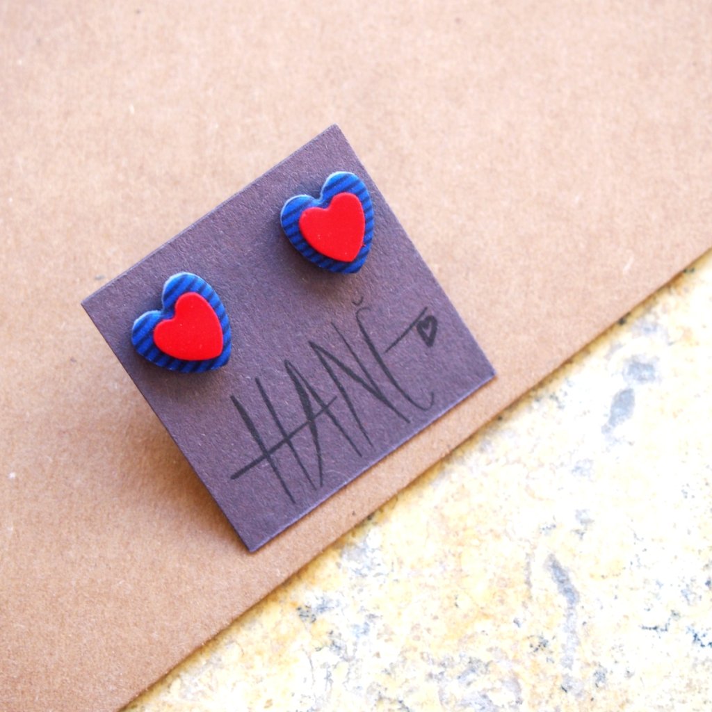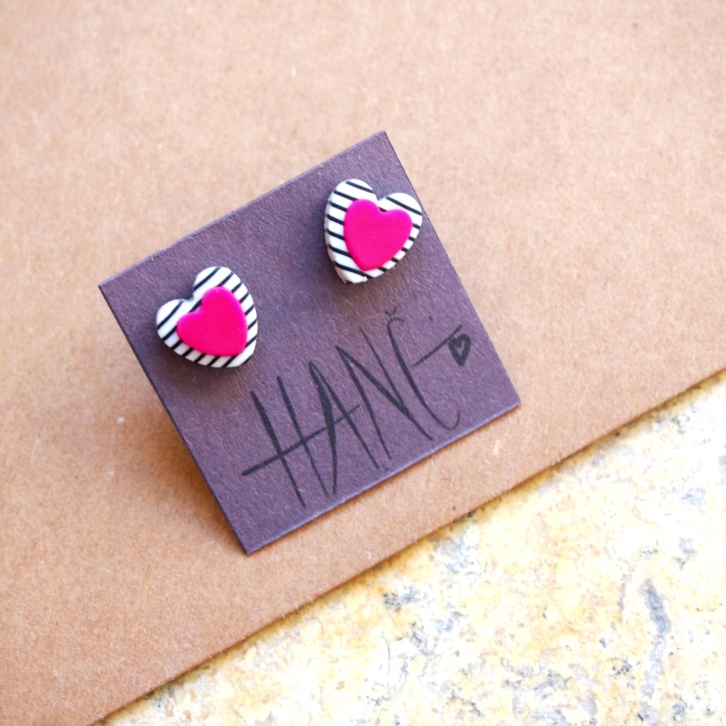 Srdíčkové náušnice Hanč nosí příběh, který si dopíšete sami. Jednobarevné i dvoubarevné, jemné nebo kontrastní, vždycky ale ručně vyrobené z polymerové hmoty. Lehké, příjemné a s tvarem, který se dá číst i bez slov – dvojité srdce jako symbol přátelství, něhy nebo jen nálady.