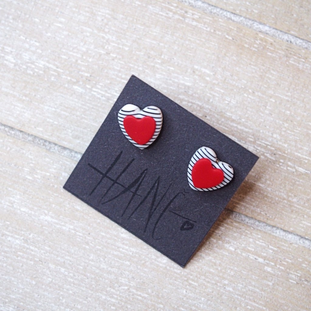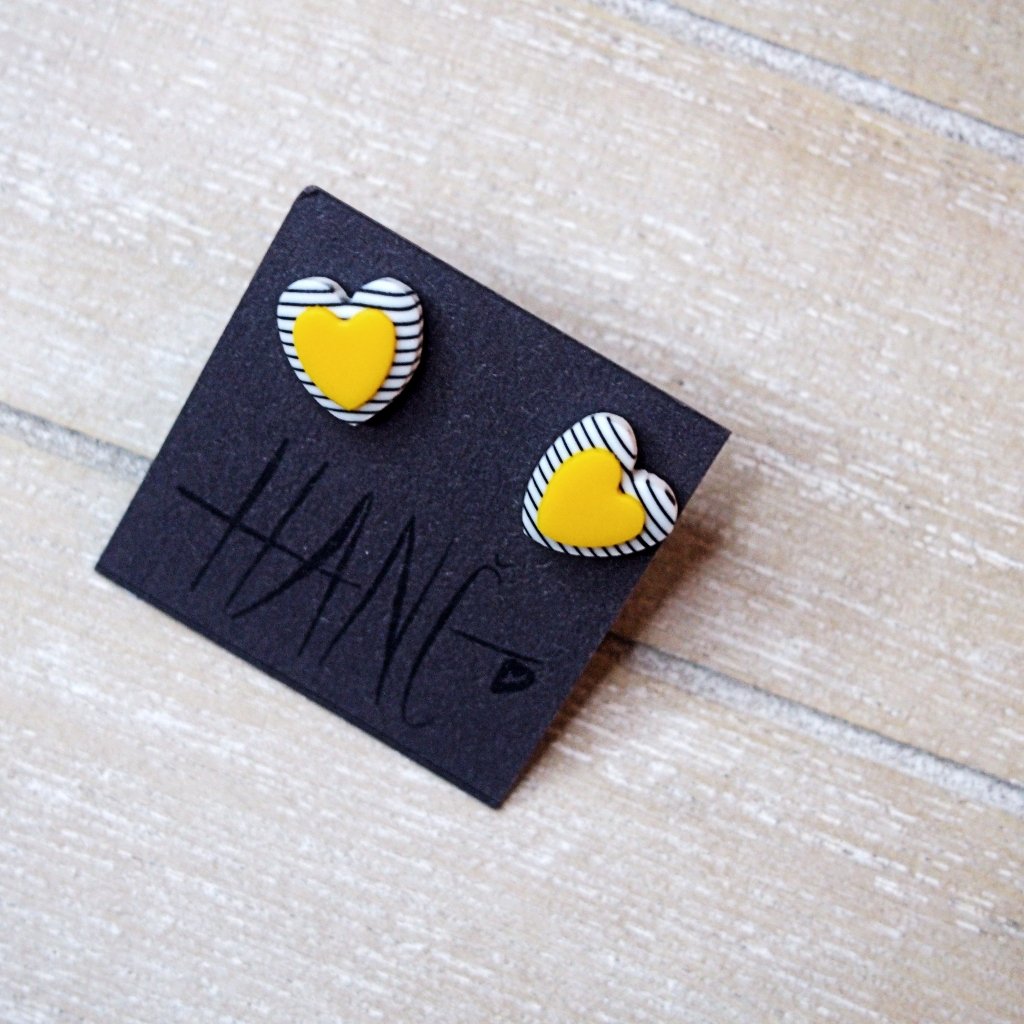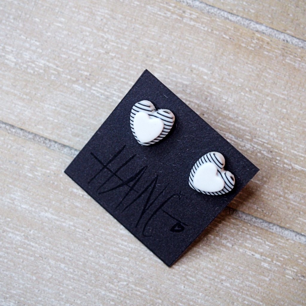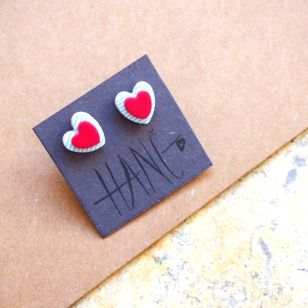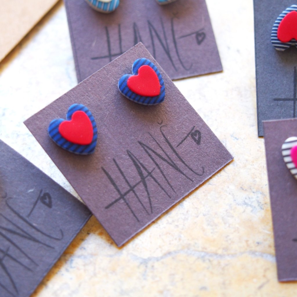 Srdíčkové náušnice Hanč nosí příběh, který si dopíšete sami. Jednobarevné i dvoubarevné, jemné nebo kontrastní, vždycky ale ručně vyrobené z polymerové hmoty. Lehké, příjemné a s tvarem, který se dá číst i bez slov – dvojité srdce jako symbol přátelství, něhy nebo jen nálady.