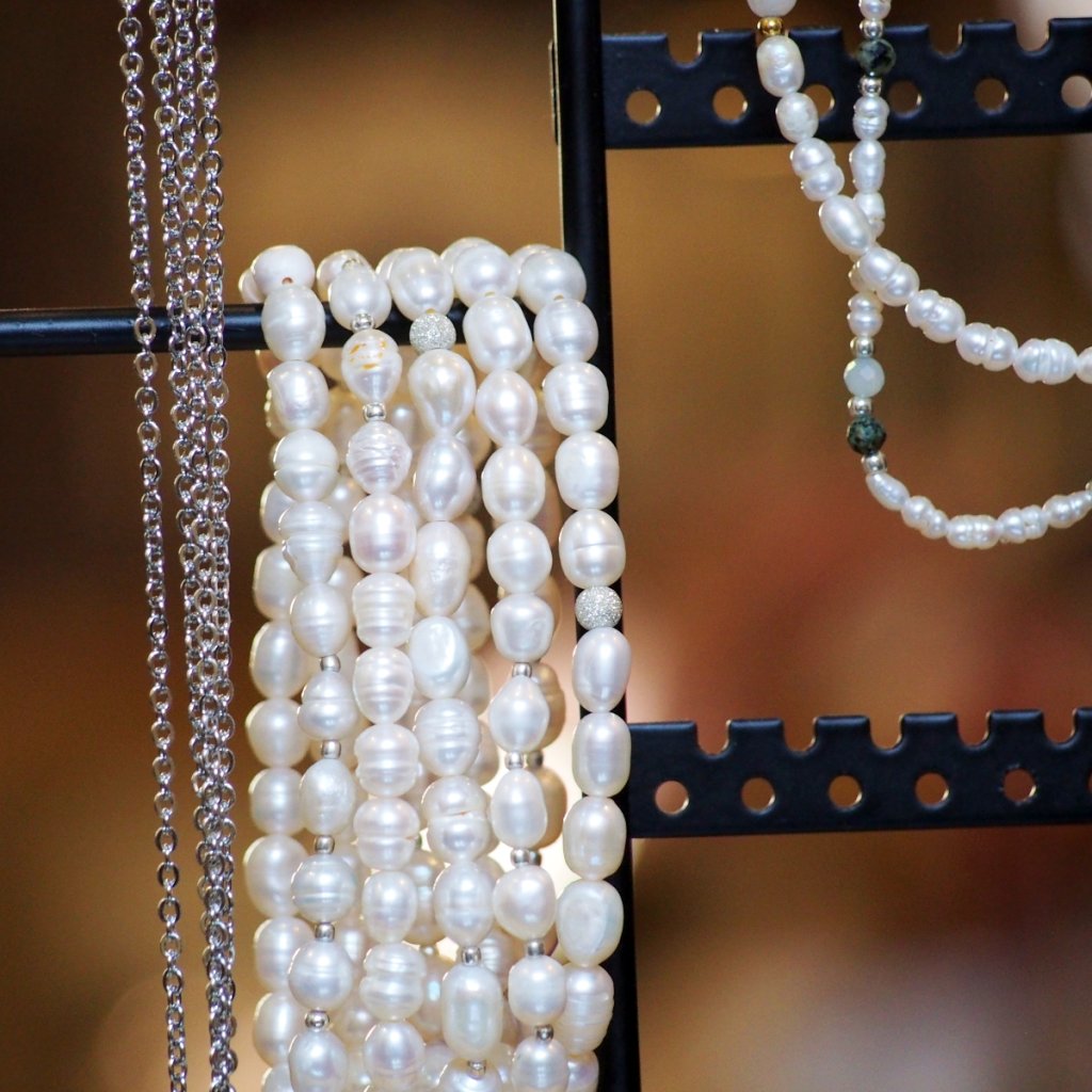 Co z něj dělá autorský kousek? Kombinace přírodních perel, ruční kompletace a malá omezená série. Nic sériového, nic anonymního.