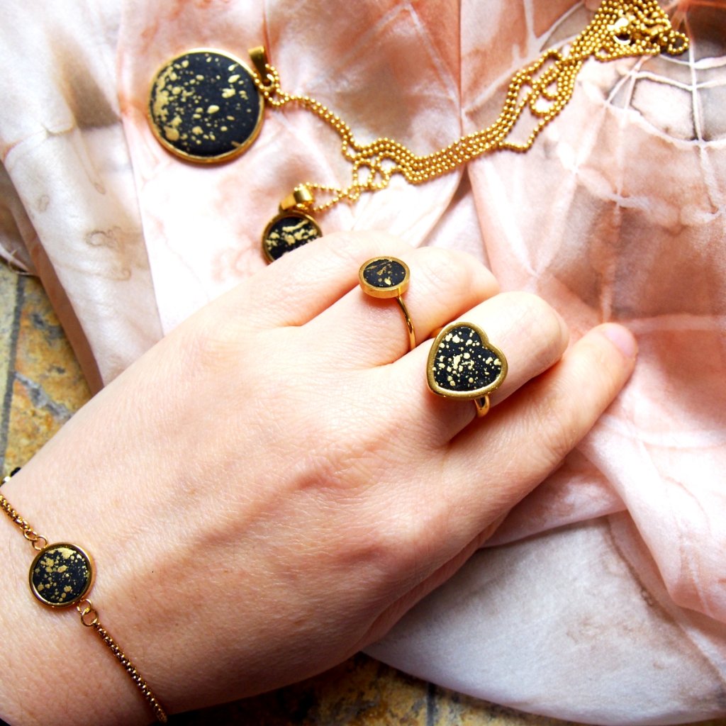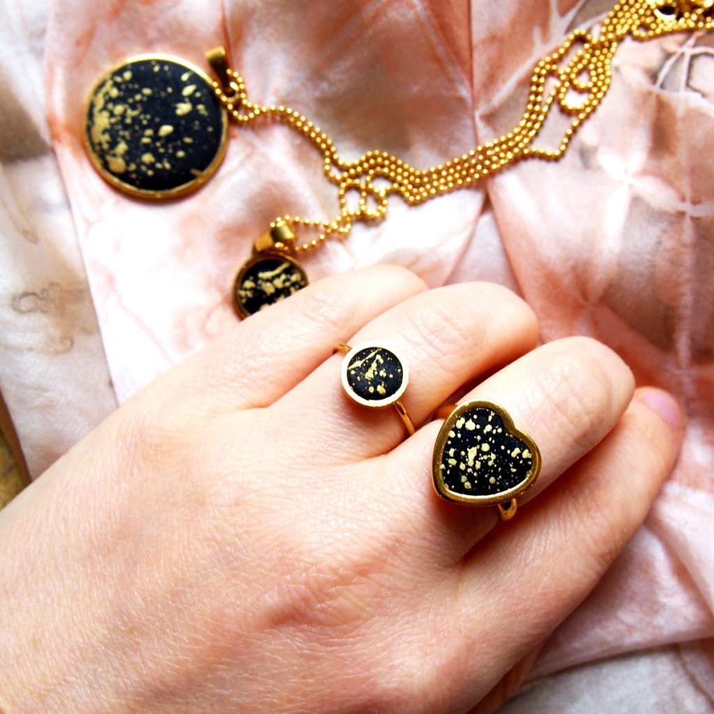Je každý kus stejný? Ne, každý prstýnek je originál – dekor zlatých cákanců se u každého kusu mírně liší.