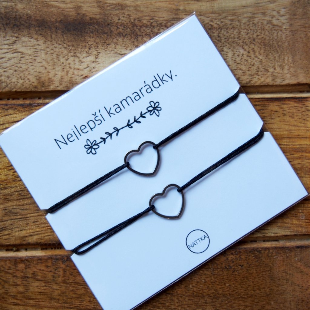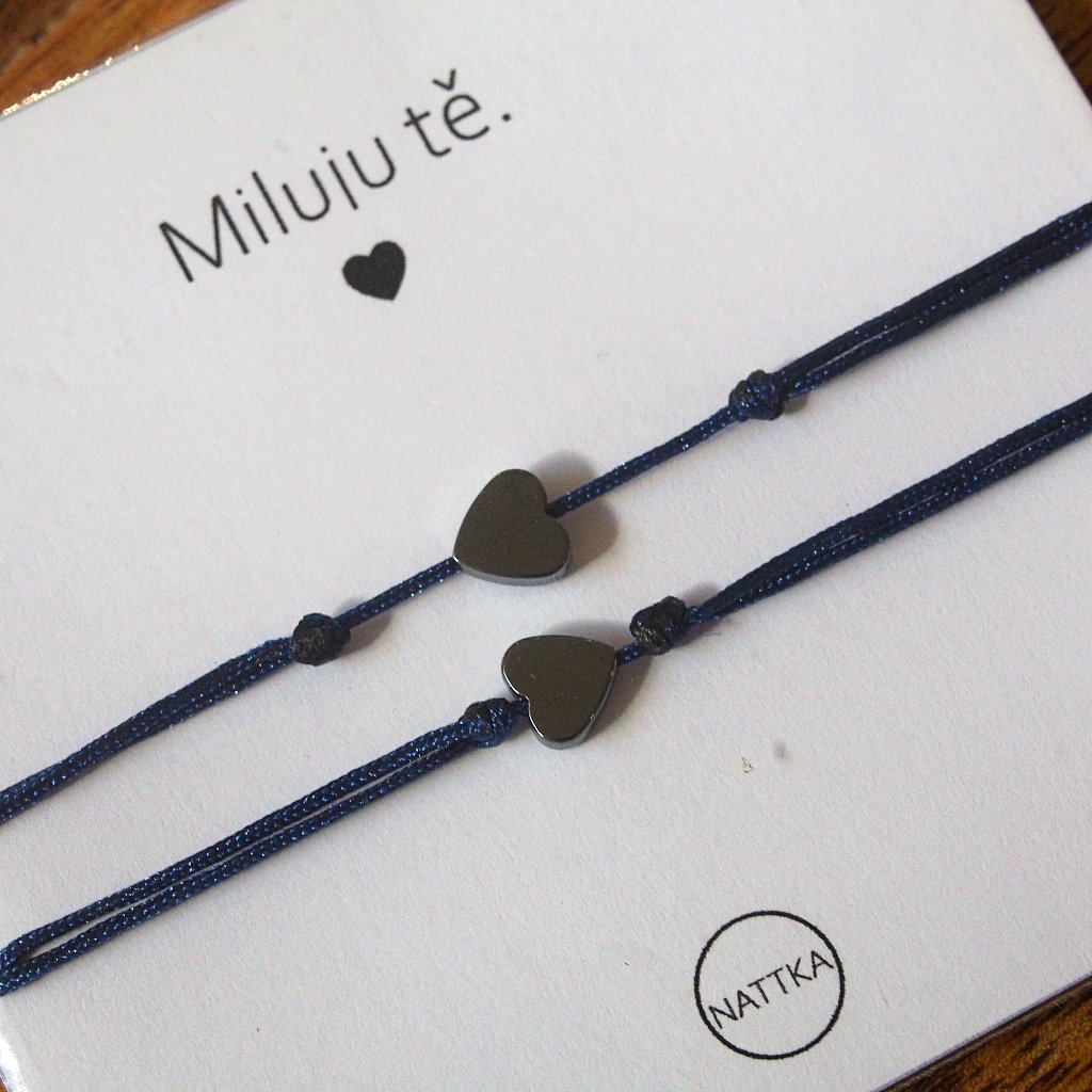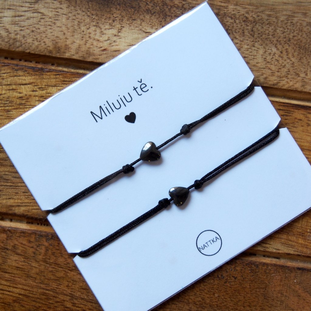 Dva jemné náramky, každý jiný – přesto tvoří dokonalý pár. Kombinace barevných provázků a symbolických korálků nebo ocelových komponentů dělá z téhle sady dárek, který se přizpůsobí osobnosti obdarovaného i významu, který mu chcete dát. Srdíčko z hematitu, ležatá osmička z nerezové oceli, kontrastní kombinace bílého howlitu a černého lávového kamene – každý detail má svůj vlastní příběh.