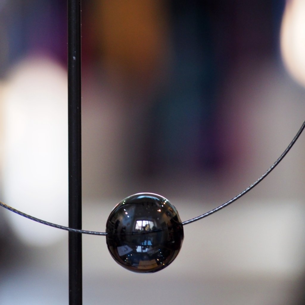 Skleněný korálek o průměru 3 cm se jemně vznáší na ocelovém lanku dlouhém 46 cm. Varianty – duhová, stříbrná, černá a čirá – dovolují experimentovat s výrazem i náladou. Hra světla a transparentních odlesků vytváří iluzi, že korálek drží v sobě vlastní vesmír, a přitom je odolný a vhodný i pro citlivou pokožku.